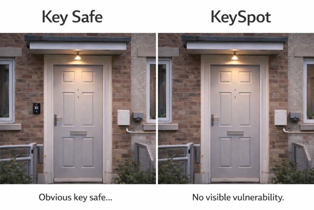 Unlike traditional key safes, which can draw attention to where a key is kept, KeySpot® has been developed to reduce visible vulnerability while supporting controlled and practical property access.